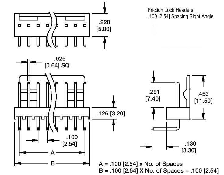 .100" (2.54mm) Pin Spacing