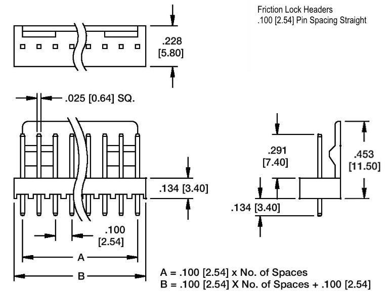 .100" (2.54mm) Pin Spacing