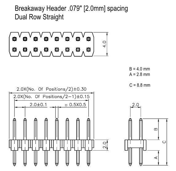 2.0mm (.079") ROW SPACING