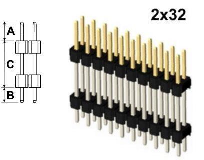 2x32 Header .1sp Dual Insulator A=.250 B=.130 C=.350