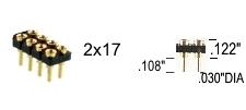 2x17 pin SIP x 2 Row Low Profile Machined Socket g/g